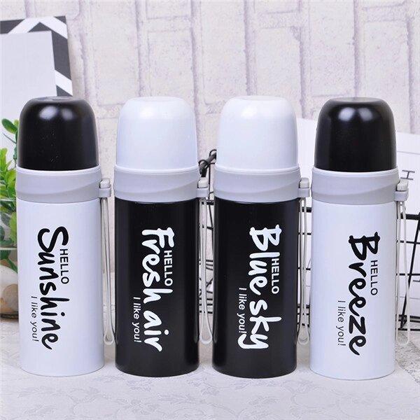 Термос «I like you» з оригінальними написами Термос «I like you» має кришку, яку можна використовувати як кухоль, а завдяки перехіднику-клапану зручно наливати та закривати термос. Перехідник за допомогою 1 натискання закриває або відкриває термос і можна наливати гарячі напої.Термос виготовлений із неіржавкої сталі та пластику та має шнурок для зручного транспортування.Матеріали: неіржавка сталь, пластик. Місткість термоса: 350 мл Розміри термоса: 20×6,8 см